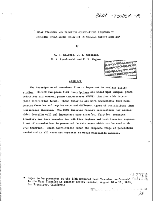 Bob has recently completed a book-length expansion of his personal connections with the history of multi-phase computational fluid dynamics. The initial efforts summarized in the documents mentioned above play a critical role in that history.